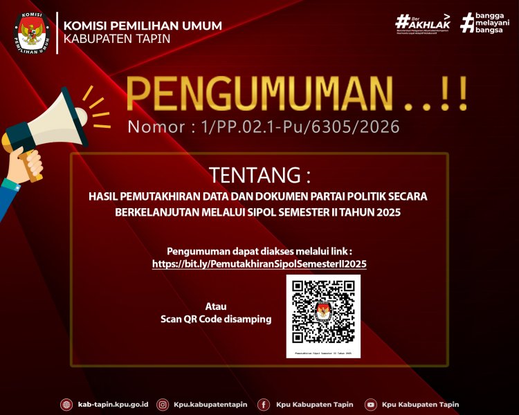 Pengumuman Hasil Pemutakhiran Data Dan Dokumen Partai Politik Secara Berkelanjutan Melalui Sipol Semester II Tahun 2025