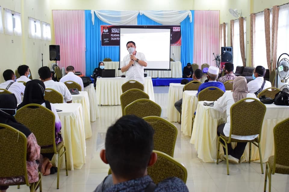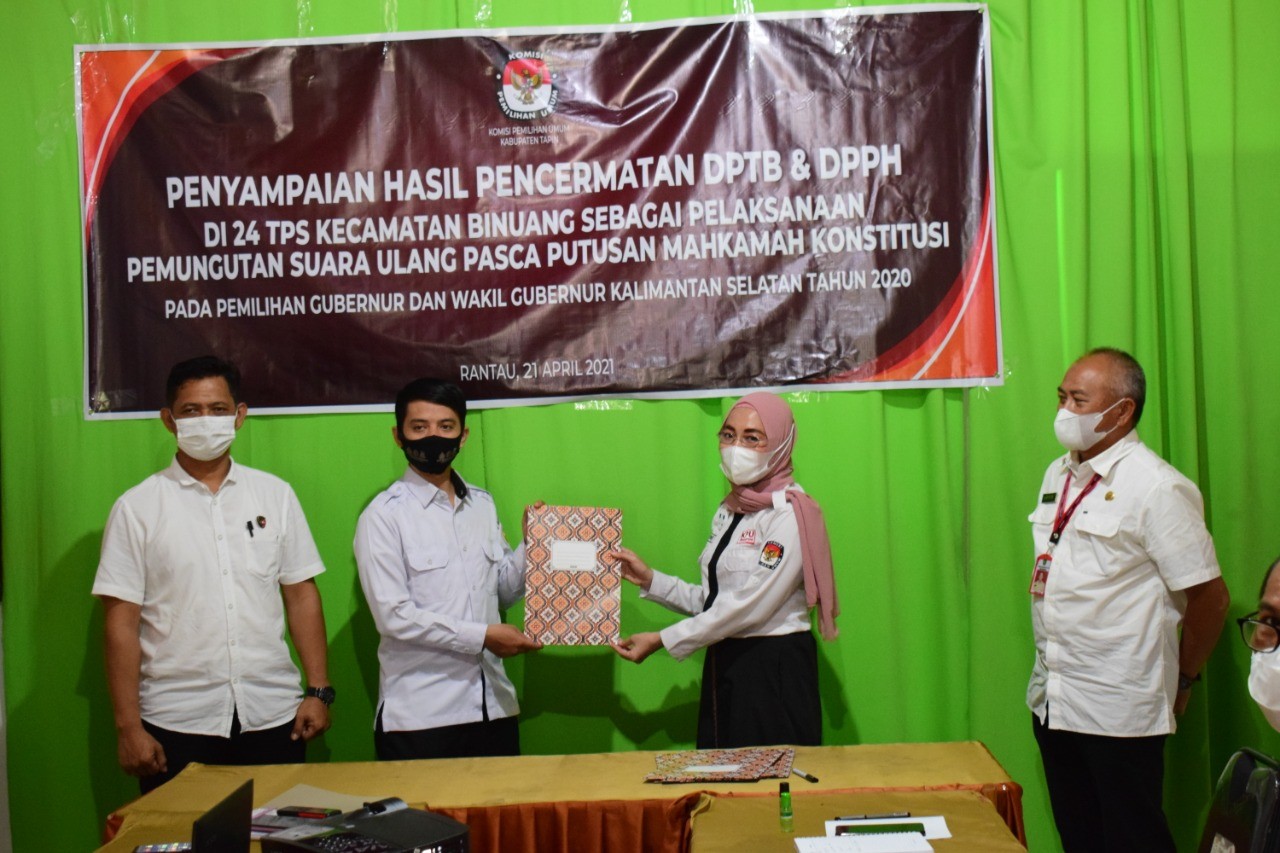 Rantau, kab-tapin.kpu.go.id -Ketua KPU Kabupaten Tapin bersama didampingi Anggota dan Sekretaris Selasa (27/04/2021) menyambangi Kantor Bupati Tapin. Tujuan kedatangan ini dalam rangka koordinasi KPU Kabupaten Tapin dengan Pemerintahan Kabupaten Tapin terkait persiapan pelaksanaan tahapan Pemungutan Suara Ulang (PSU) di 24 TPS Kecamatan Binuang. Kedatangan rombongan KPU Kabupaten Tapin disambut langsung oleh Bupati Tapin HM. Arifin Arpan di ruangan kerjanya. Ketua KPU Kabupaten Tapin Hj. Henny Hendriyanti sebelumnya menjelaskan maksud kedatangan kepada Bupati Tapin. Henny memaparkan hasil keputusan Mahkamah Konstitusi yang memerintahkan dilaksankannya PSU di 24 TPS Kecamatan Binuang yang sesaui jadwal akan digelar tanggal 9 Juni 2021. Selain itu Henny juga menyerahkan jadwal tahapan pelaksanaan PSU di Kecamatan Binuang kepada Pemerintah Kabupaten Tapin. Dalam pertemuan ini Bupati Tapin menyatakan siap mendukung dan menyukseskan pelaksanaan tahapan PSU yang dilaksanakan KPU abupaten Tapin. “Atas nama Pemerintah Daerah Kabupaten Tapin, kami siap mendukung dan menyukseskan seluruh tahapan pelaksanaan PSU di Kecamatan Binuang”, kata Arifin Arpan dalam pertemuan ini. ang