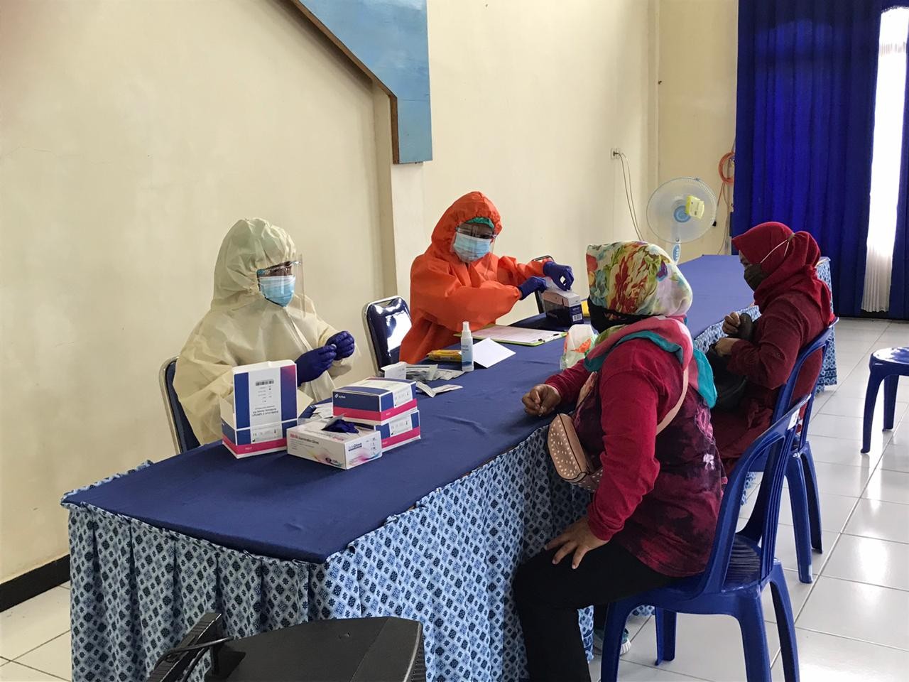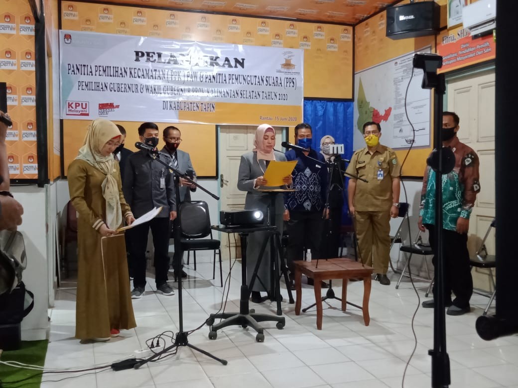 Rantau, kab-tapin.kpu.go.id KPU Kabupaten Tapin melaksanakan Rapid Tes bagi 469 Petugas Pemutakhiran Data Pemilih (PPDP) pada Kamis (16/07/2020) kemarin yang tersebar di 135 Kelurahan dan Desa. Pelaksanaan Rapid tes ini adalah hasil kerjasama dengan Dinas Kesehatan Kabupaten Tapin. Rapid Tes dilaksanakan sebelum PPDP mulai diterjunkan untuk kegiatan Coklit atau Pencocokan dan Penelitian Data Pemilih. Rapid Tes digelar di Aula Kecamatan yang tersebar di 7 lokasi berbeda masing-masing di Kecamatan Binuang, Tapin Selatan, Bakarangan, Candi Laras Utara, Lokpaikat, Piani, dan Bungur. Rapid Tes bagi PPDP ini dilaksanakan untuk mengetahui kondisi kesehatan PPDP sebelum mulai mencoklit data pemilih ke rumah-rumah warga dan memastikan PPDP yang bertugas mulai besok (19/07/2020) telah bebas dari indikasi tertular Covid-19. Langkah ini dilakukan sebagai bagian dari penerapan protokol kesehatan pencegahan Covid-19 dalam tahapan Pilkada. Sehingga masyarakat tidak perlu khawatir saat PPDP melaksanakan Coklit Pemilih. Sebagaimana tercantum dalam Surat Dinas KPU RI Nomor 546 Tahun 2020 tanggal 9 Juli 2020, PPDP yang dinyatakan reaktif setelah dilakukan pemeriksaan kesehatan yang berkaitan dengan Covid-19 diganti dengan PPDP lain yang diusulkan oleh PPS dan dilakukan pemeriksaan Rapid Tes Kembali pengganti PPDP. Bagi yang reaktif tidak tugaskan turun Coklit serta disampaikan kepada yang bersangkutan untuk melakukan isolasi mandiri serta berkoordinasi dengan Gugus Tugas Percepatan Penanganan Covid-19 Kabupaten Tapin. (ang)