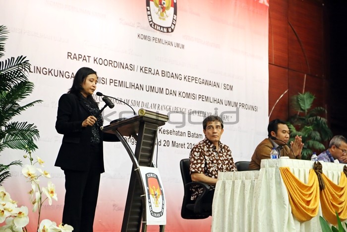 Keterangan Foto : Komisioner KPU RI Hadar Nafiz Gumay, Arif Budiman, Juri Ardiantoro, Ida Budhiarti, dan Sigit Pamungkas (Foto : kiri - kanan) saat Uji Publik PKPU hari ini, Rabu (18/3)