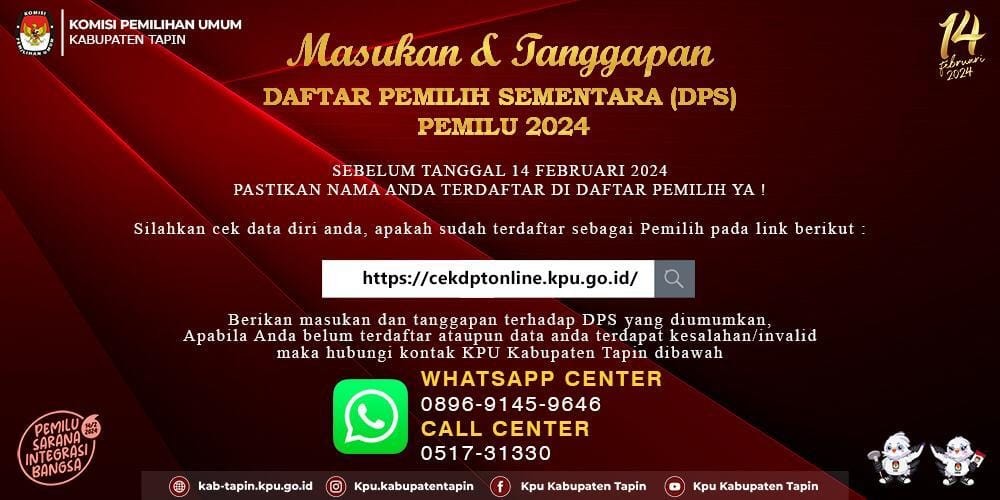 Adapun peserta rapat pleno adalah Bawaslu dan 6 Partai Politik calon Peserta Pemilu Tahun 2024 yang telah dilakukan verfak keanggotaan oleh KPU Kabupaten Tapin yaitu Partai Hanura, PKN, PBB, Ummat, Perindo dan PSI.