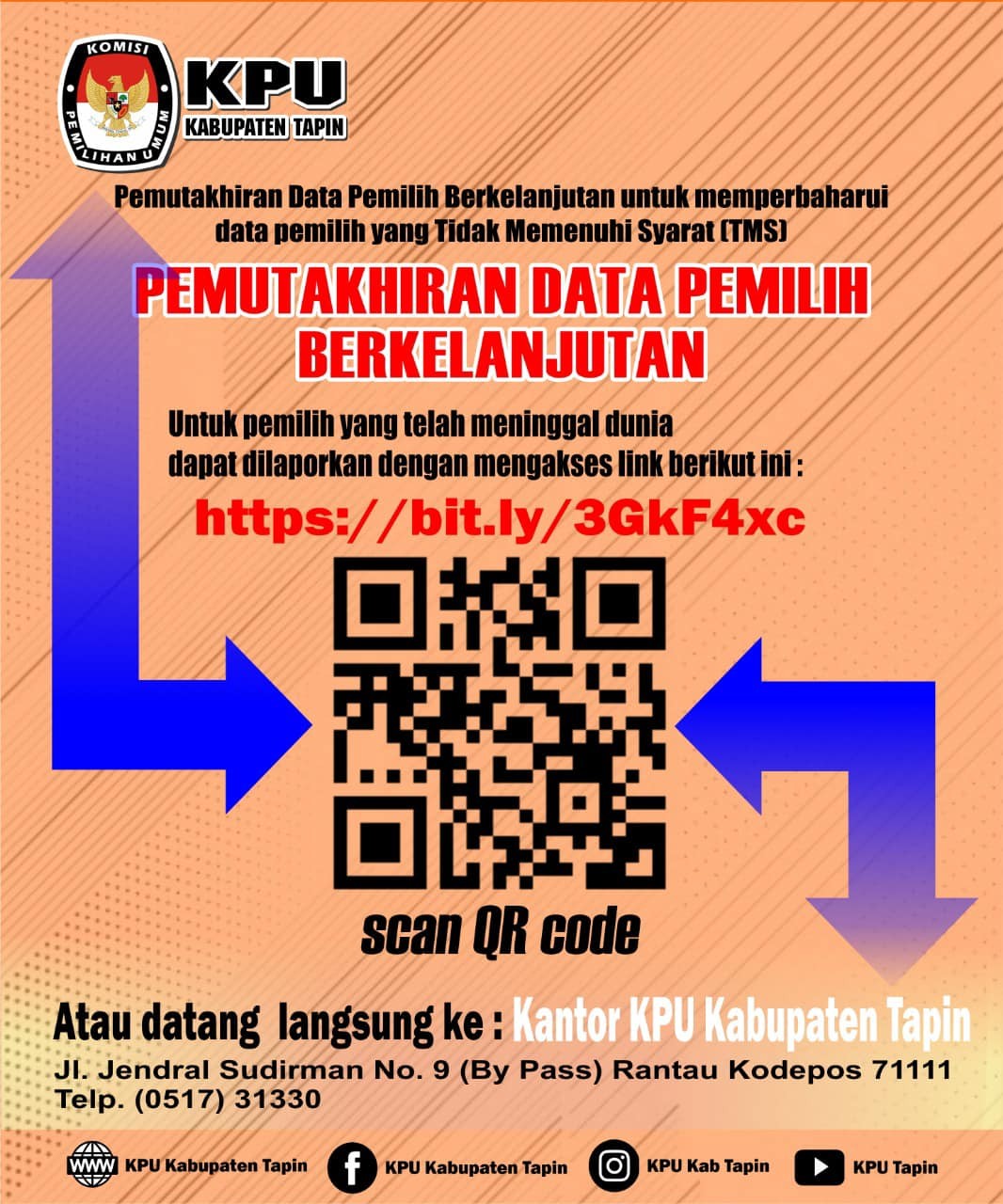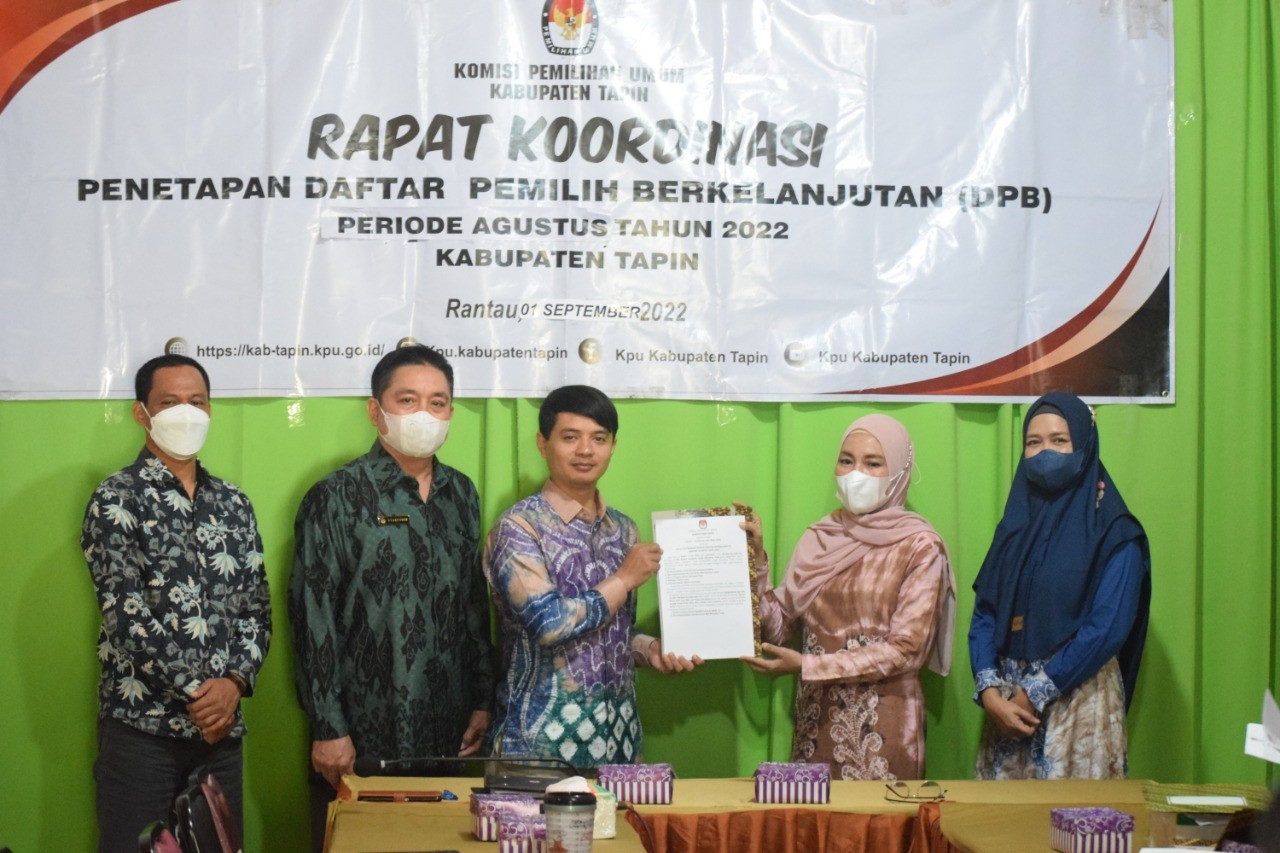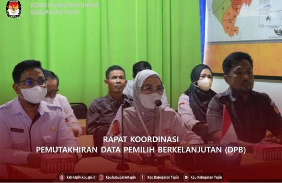 Pada hari ini Kamis, tanggal Satu bulan September Tahun Dua Ribu Dua Puluh Dua, bertempat di Aula KPU Kabupaten Tapin , KPU Kabupaten Tapin melaksanakan Rakor DPB Periode Agustus Tahun 2022,turut memberikan sambutan adalah Komisioner KPU Kalsel Bapak Siswandi Rey'an. Rapat Koordinasi ini di hadiri langsung oleh Ketua Bawaslu Kabupaten Tapin, Kasat Intelkam, Polres Tapin, Pasi Intel Kodim 1010 dan Disdukcapil Kabupaten Tapin serta seluruh Komisioner KPU Kabupaten Tapin.