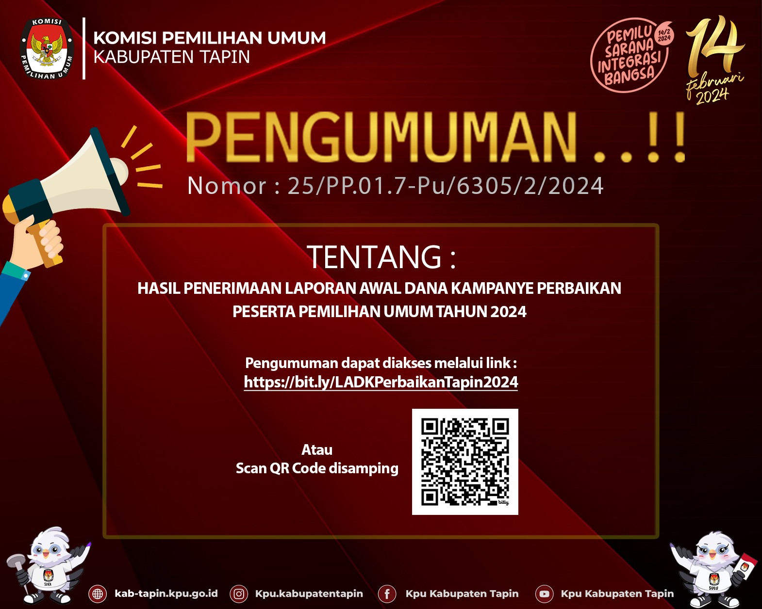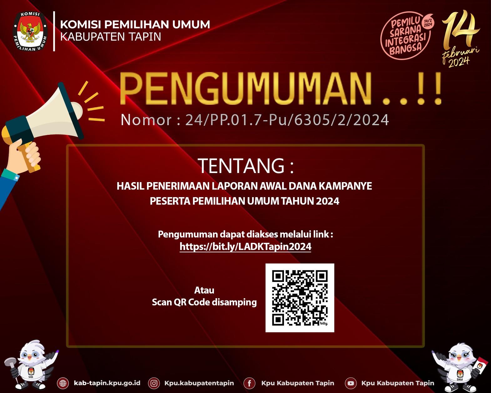 Demikian pengumuman ini disampaikan sebagai bentuk keterbukaan informasi publik dan komitmen KPU Kabupaten Tapin dalam meningkatkan profesionalisme, akuntabilitas, serta kinerja organisasi.
